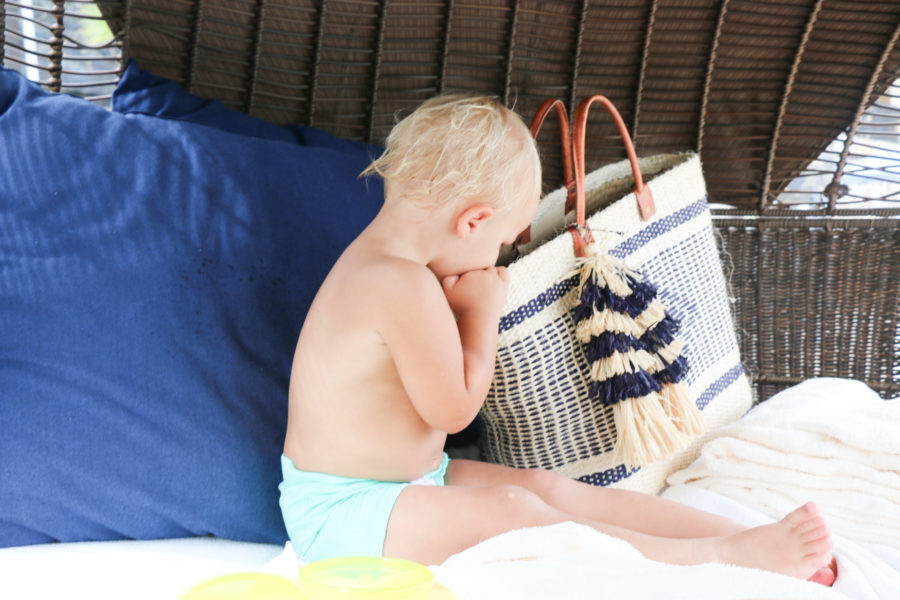 While there are cabanas by the larger pool for rent, there are plenty of covered comfortable seating that you don’t have to pay extra for. Like these hanging teepees, and covered little pods. The poolside service was excellent. I got up to change wesley once, and came back to my cover up folded, our shoes straightened in a row, and fresh water on the side table. We had lunch by the pool twice — which was so convenient.