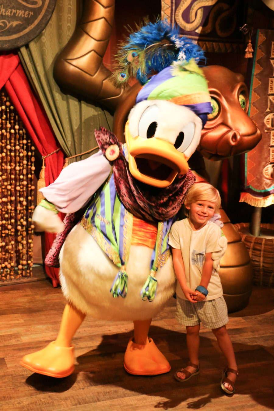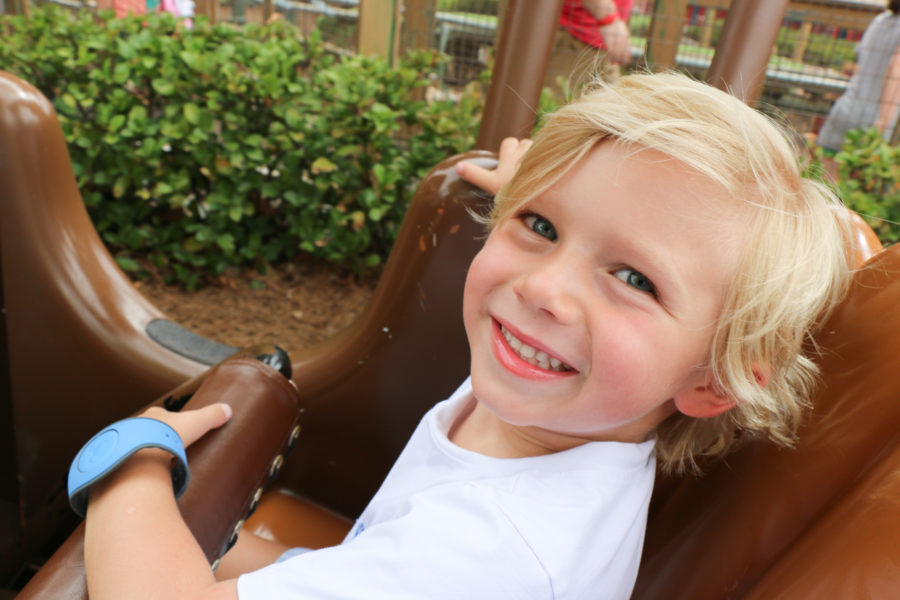 On Friday afternoon while Wes was napping, Tuck and I snuck away to the Magic Kingdom. We have the weekday annual passes, and June 1st was our final day to use them until August due to blackout dates. We used the Four Seasons bus, which was comfy and had Frozen playing. After going through bag check and security, Tuck told me “I love that part! It’s my favorite – all those police mickeys!!”. LOL. I decided to not book our fast passes until we were there. Which worked out well. When Tuck told me he wanted to go on the train, we just hopped on and didn’t worry about missing our fast passes. We rode to Fantasy Land – met Goofy and Donald at Pete’s Sideshow, rode Dumbo, The Barnstormer, and went on the speedway. We got fast passes on the spot for everything, one right after the other. Then we went back on the monorail and caught the bus. This is why I love having the annual passes – you don’t feel bad that you’re not staying all day there. For $200 for the year, it has been worth it.