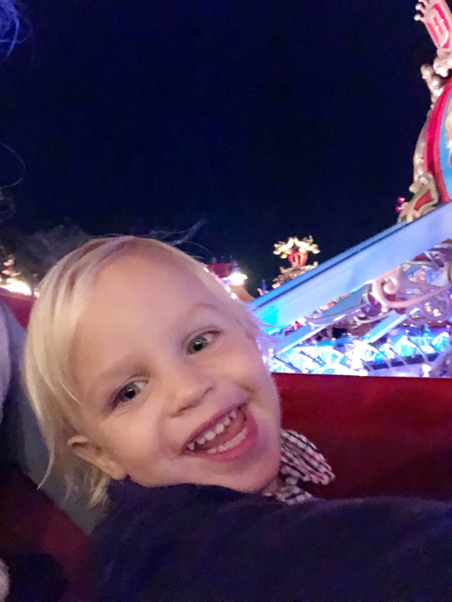 Last night we were invited by Disney to Mickey’s Very Merry Christmas Party. I had never been, and didn’t know too much of what to expect. I know it’s early to get started in the spirit of things, but we could not pass up free tickets. Plus, I’m kinda on the side of things that it’s never too early to get in that holiday spirit. After a ton of trips to Disney, this was one of our most memorable. Part of it is the ages of our kids (2 &4)… they LOVED staying up past their bedtime, riding rides in the dark (with literally no lines), all of the free treats, the snow down main street, and the parade. JB kept saying “I didn’t even know this existed!” … he loved it, just as much as the kids. Yesterday was grandparents day, and so we left a couple hours after Tuck and Wesleys school. Traffic wasn’t fun getting up there at that time, but it took us less than an hour and a half to drive home last night. We popped off for chick-fil-a before we arrived, as we wanted full bellies, because I knew my kids would just want to go go go once we got there. Plus ALL of the free treats at every turn!